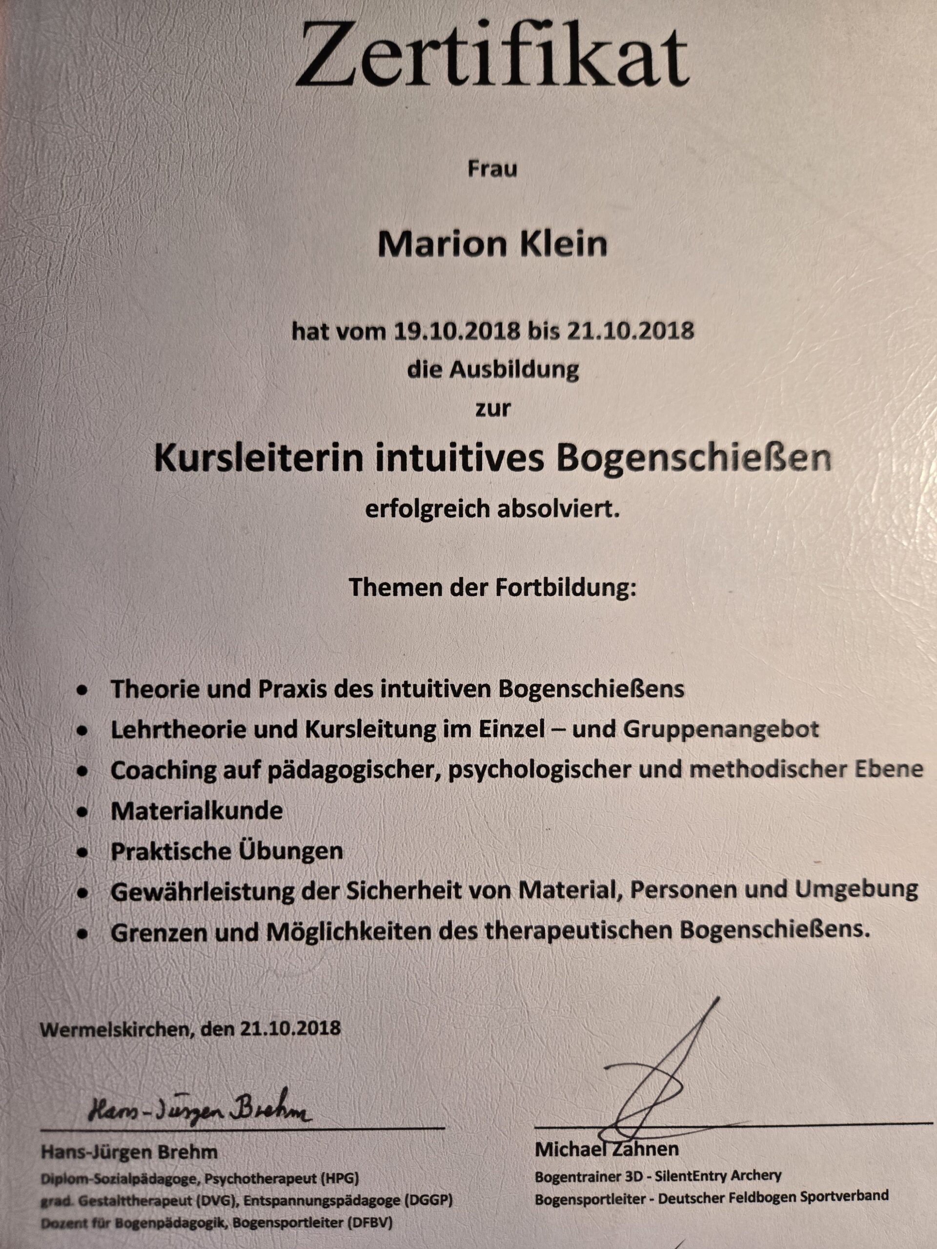 Dieser Gedanke hat mich angetrieben und seit 2018 bin ich Übungsleiter im Intuitiven Bogenschießen. Zusätzlich habe ich eine Ausbildung zum Achtsamkeits Coach. Durch beide Ausbildungen kann ich die entsprechenden Techniken miteinander kombinieren.